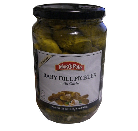 Baby dill pickles with garlic.
