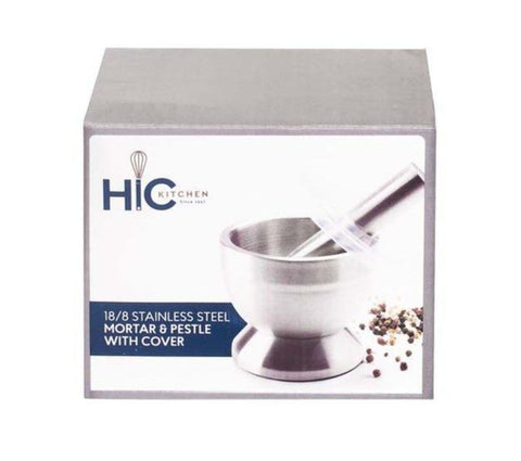 HIC Stainless Steel Mortal and Pestle with Cover, 3.5 x 4 in.