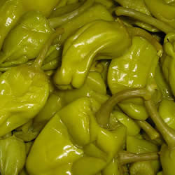 These Salonica peppers are imported and have a crispy texture with a slightly hot flavor. They're great to snack on right out of the jar, but also mix well in Greek salads, in crock pot dishes, or on pizza. They are packed in water, salt, vinegar and preservatives.