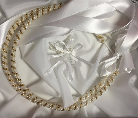 Stefana, Wedding Crowns, White Pearl and Gold, 1 Pair